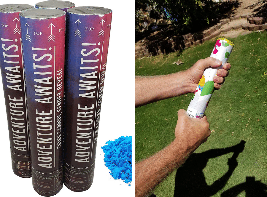 If you look at party stores and online retailers, some popular gender-reveal powders are made from cornstarch or baking soda. Both of these ingredients are safe for small-scale use (like in a gender reveal). But like with any product that goes airborne, there’s always the potential for inhalation or unintended contact. To be safe, make sure to keep your head and face away from any clouds of dust when spraying or shaking out your powder.