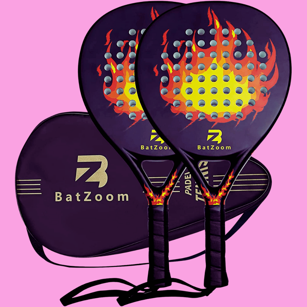 Introducing the latest and greatest in paddle tennis, BatZoom Padel! Top-quality materials make our paddles unbeatable - with carbon fiber frames and an EVA foam core, you’ll get a great ball release and a comfortable feel. The heart-shaped design is another game-changer - a bigger sweet spot, better balance - all for more power and pro control!