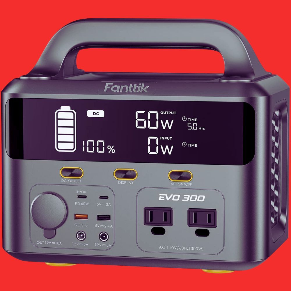 Wild charging adventures await with the Fanttik EVO 300 portable charger! Say goodbye to pesky cords, long recharge times, and low battery madness. Stay on the go with this compact wonder, loaded with 9 AC and DC outputs that can support multiple devices and scenarios. We know how unpredictable life can be, so we're proud to present you with an electricity solution that frees up your worries - a 7'' LCD large screen displays clear information like battery level, input & output power, remaining time of use, and more! What's best is this gal doesn't take forever to charge back up - it only reaches 80% after just two hours in any wall or USB C port! Stop stressing about commutes, late meetings, or travel emergencies – harness that electric power with the Fanttik EVO 300. Go big and work smarter - your wild charging dreams await!