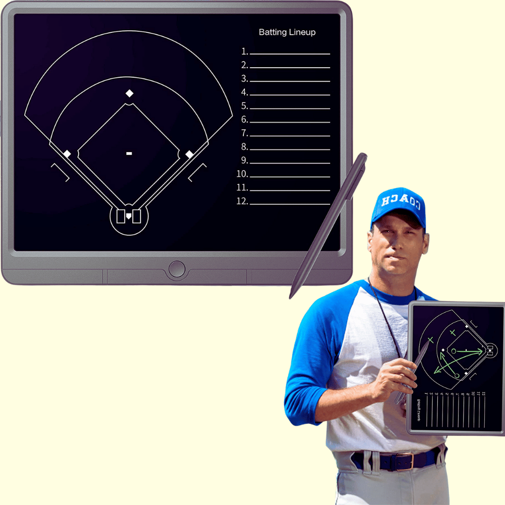 Beat the game with the one and only TUGAU Electronic Coach Board. This pro-level gear is essential to help coaches, pros, and enthusiasts get the job done like a boss! This awesome 15” LCD display accurately simulates a Baseball field enabling you to draw up all kinds of crazy epic plays. Plus it’s reusable – erase up to 100k times without a smudge.