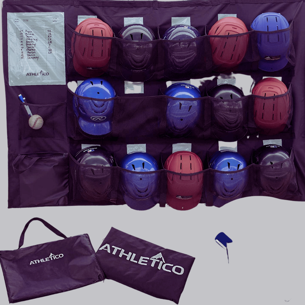 Helmets are all over the place and kids can never find their stuff? Get ready to revolutionize your team’s unorganized dugouts. The Athletico 15 Player Dugout Organizer is here to save the day, letting you keep up to fifteen players’ helmets, batting gloves, protection gear, and gloves at the ready.