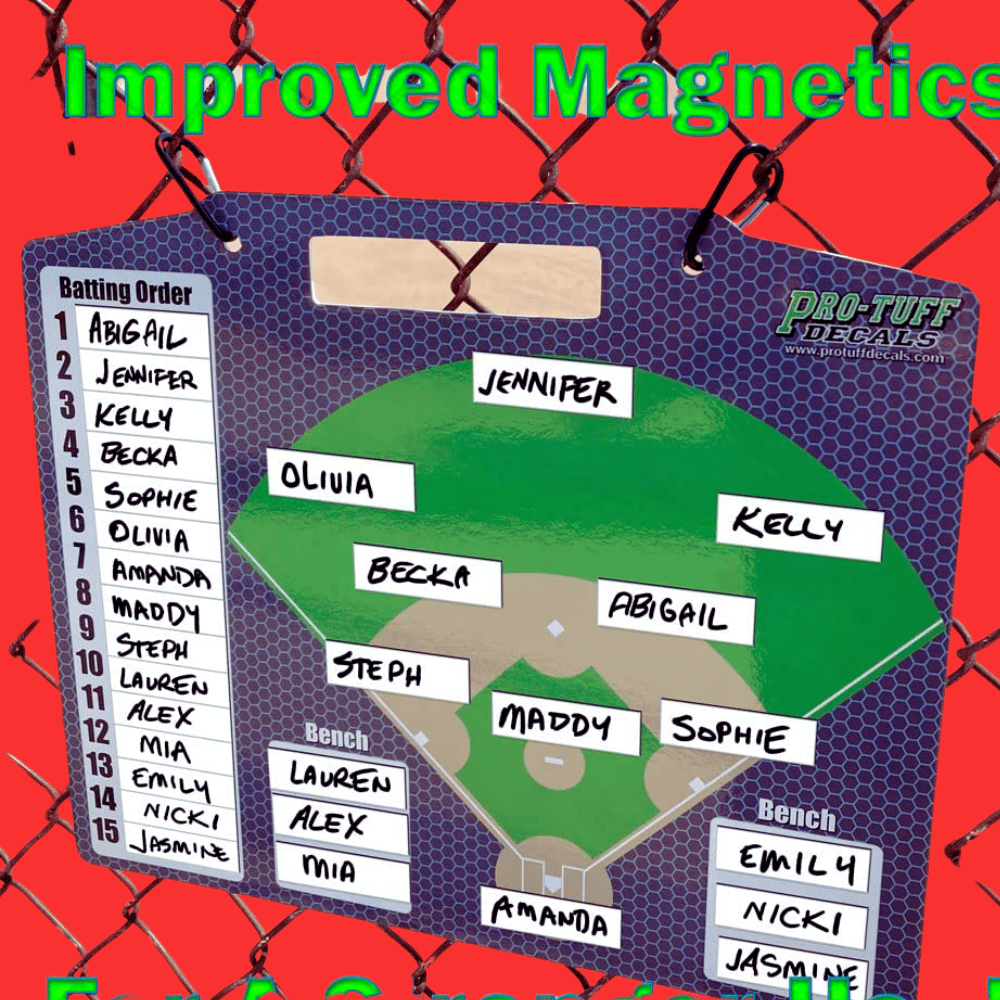 Are you looking for a way to make your coaching job easier and more enjoyable? Pro-Tuff Decals Coaches Helper is the perfect solution! They have taken their already awesome lineup board on Amazon and made it even better. The name strips are now thicker than ever, making them easier to handle and providing a stronger hold in the toughest conditions! You can easily designate guest teams, indicate field positions, and assign your bench with clear markings – no need to fuss over any details.