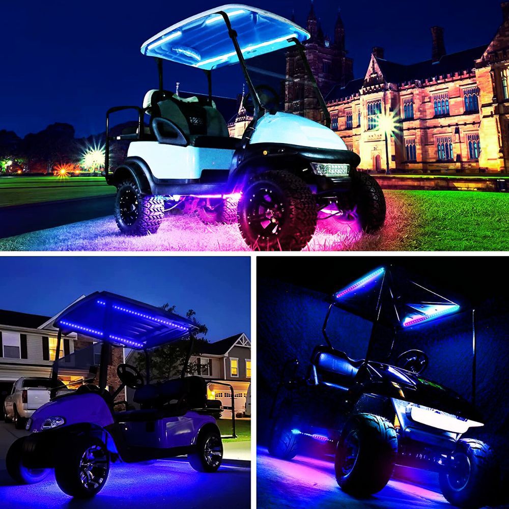 Its universal neon under glow LEDs offer an atmosphere decoration light perfect for dressing up your golf carts at any time of year – be it a Halloween parade or Christmas day.
