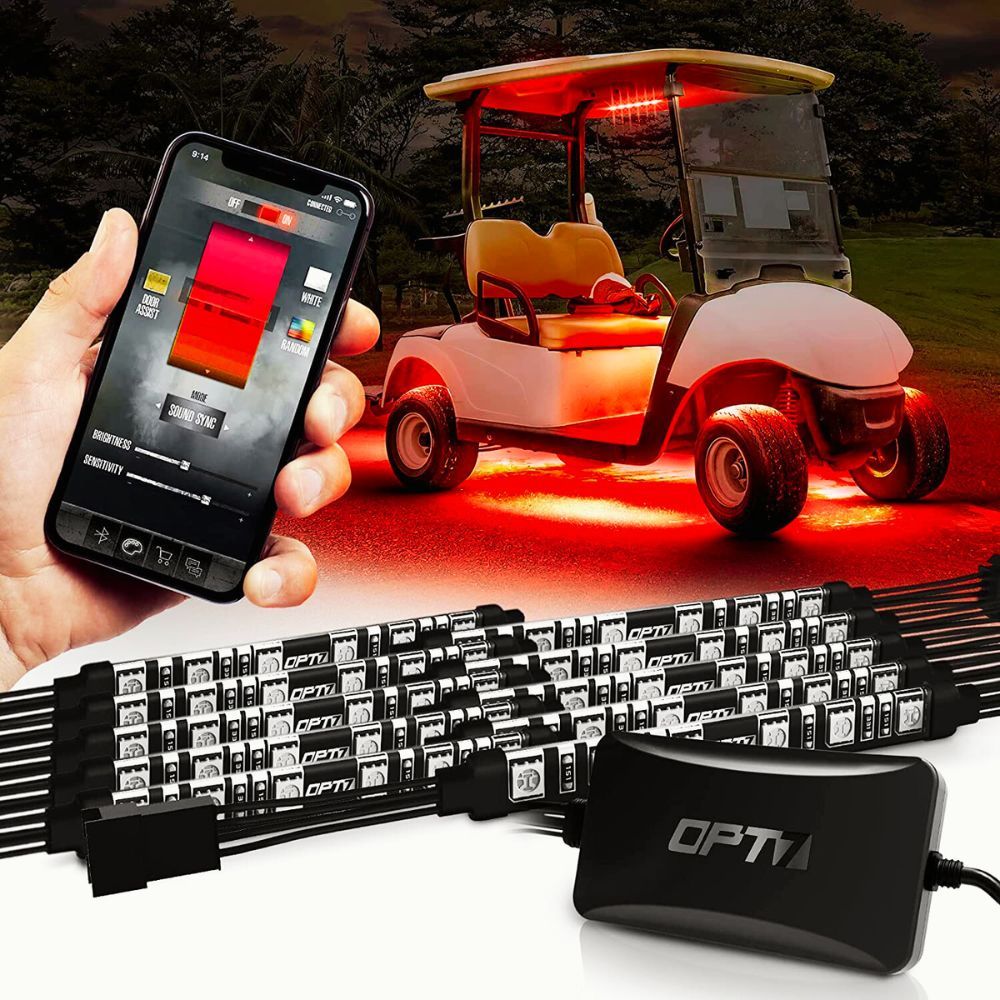Say goodbye to generic golf cart-led lighting and hello to OPT7's Aura Pro Golf Cart Underglow Bluetooth APP Led Lighting Kit! With this kit, you'll get access to the proprietary app created and designed by OPT7.