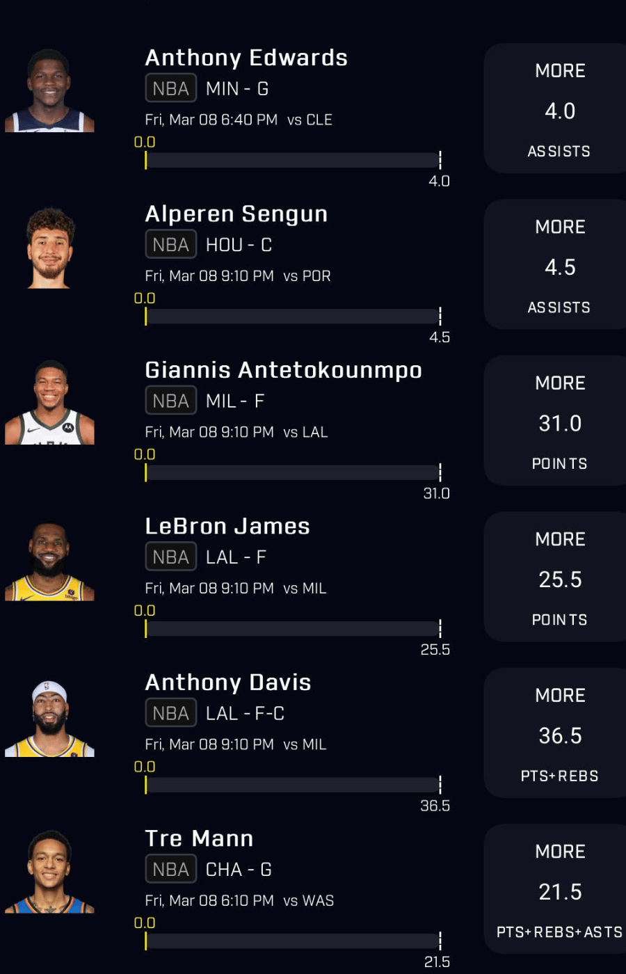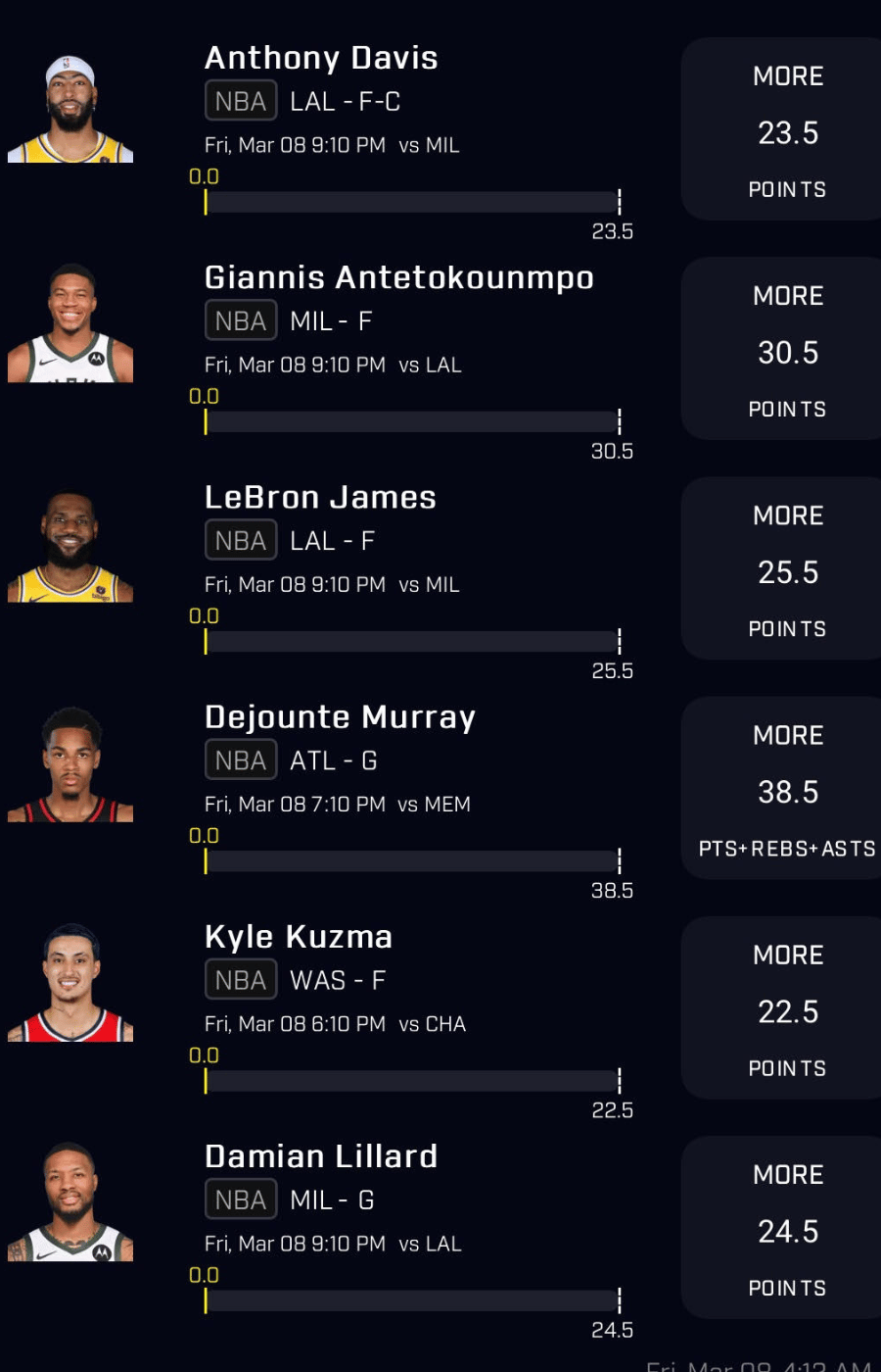 - Dejonte Murray Over 38.5 pts+rebs+asts WIN