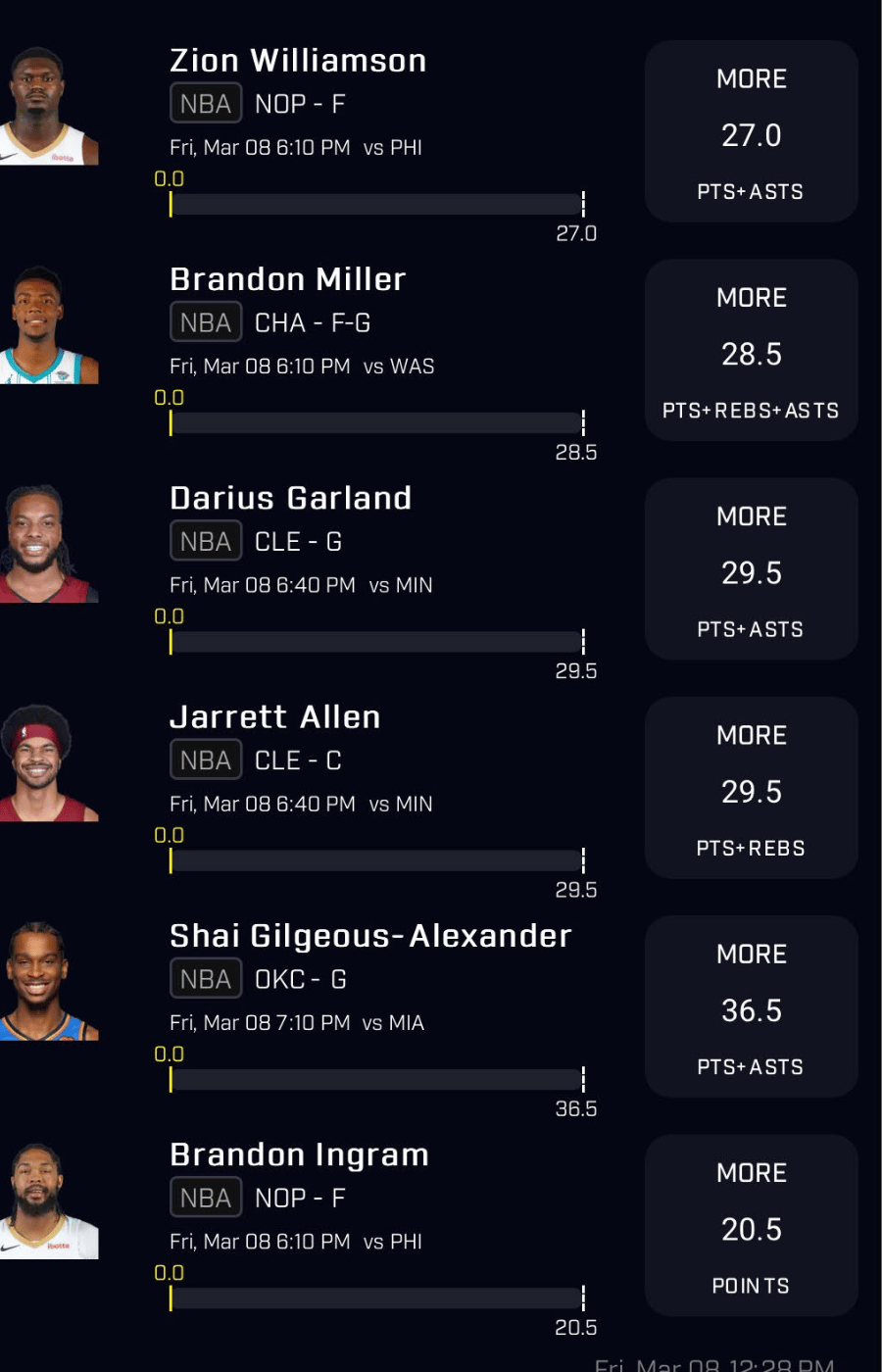 - Shai Gilgeous-Alexander Over 36.5 Pts+asts WIN