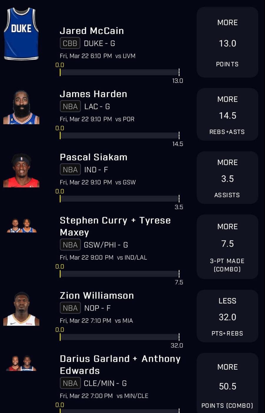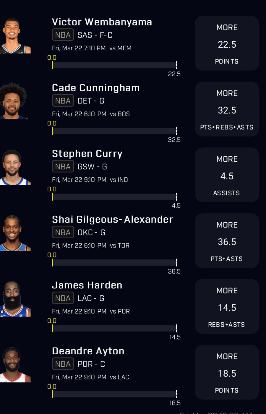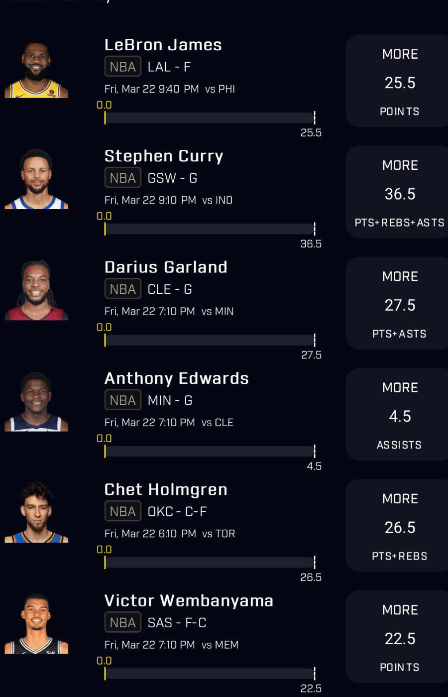NBA Player Props for Friday, March 22