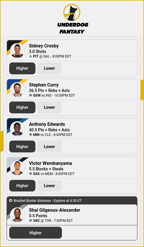 - π¨ Shai gilgeous_alexander over .5 pts (UNDERDOG SPECIAL Until 4) β