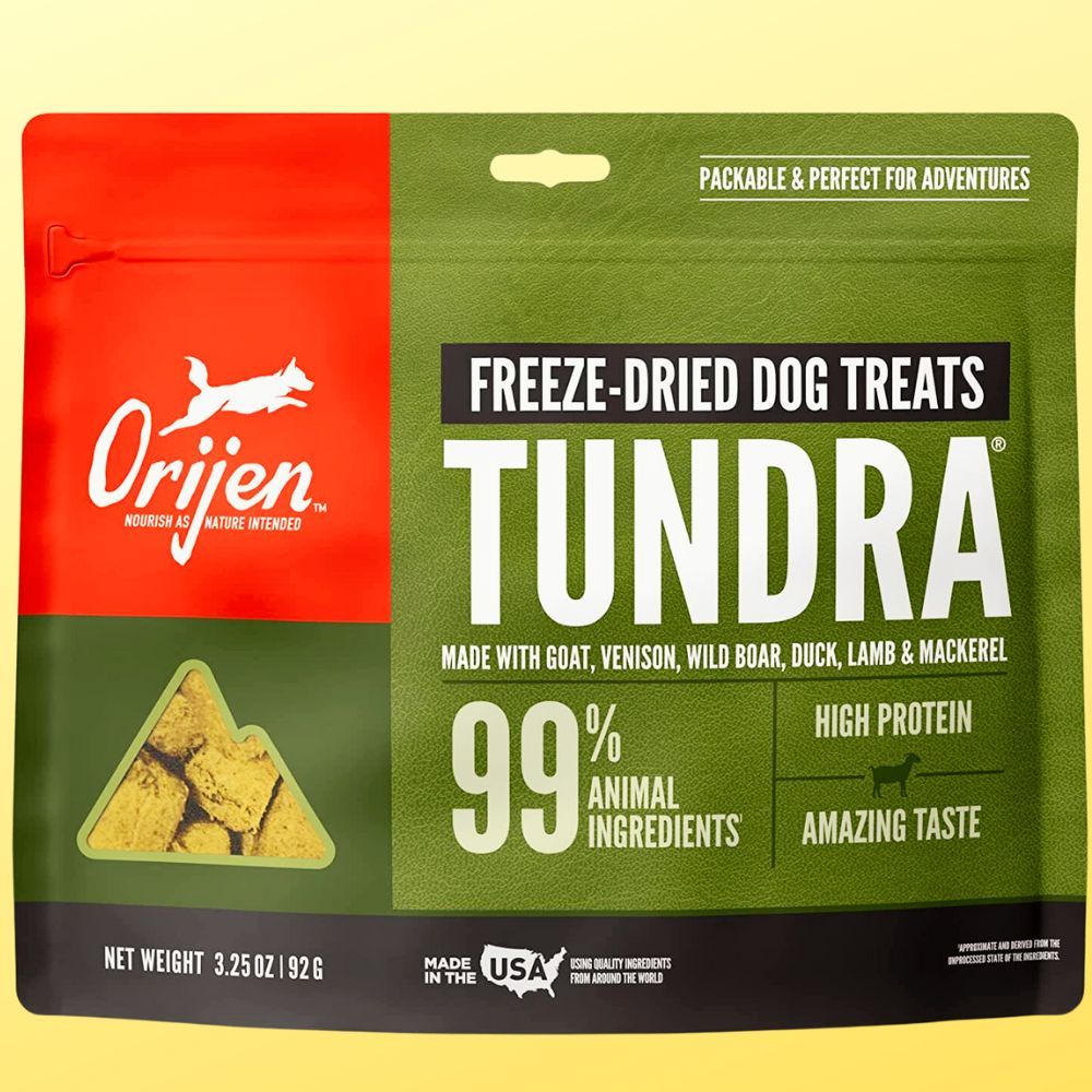 Introducing ORIJEN Tundra Freeze-Dried Dog Treats - the ultimate in all-natural rewards for your dog! Our treats are nearly too delicious to be true, featuring Boer goat, wild boar, ranch-raised venison, Arctic char, free-run duck, and ranch-raised mutton. This tasty treat also comes with 100% quality animal ingredients and only natural preservatives so you can trust that you're giving your pup the absolute best.