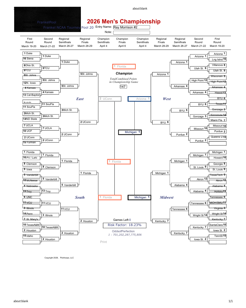 BYU's sitting pretty with probably the best player in the entire tournament (AJ Dybantsa = future No. 1 pick vibes), and to win a pool you gotta get weird sometimesβI'm riding the Cougars deep.
