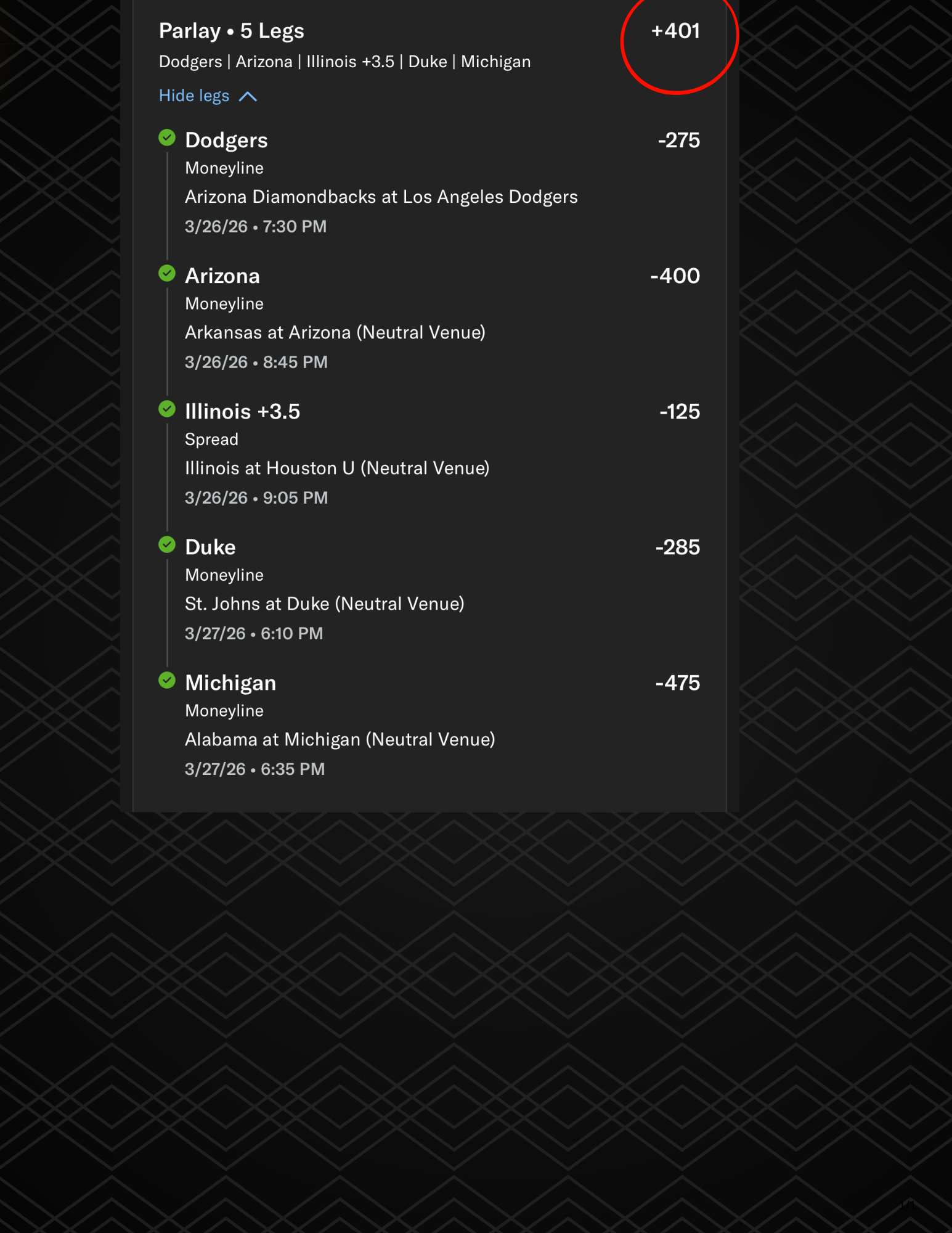 CBB BANKROLL PARLAYS (hit a bunch of parlays, so now way up for the tourney after the terrible start in the first round)