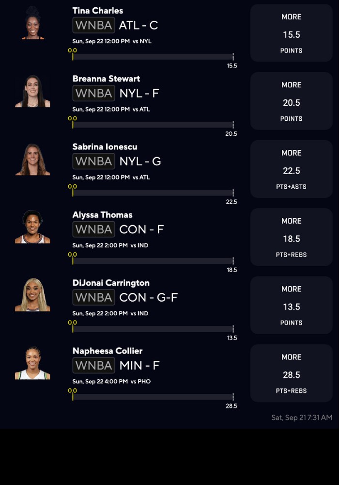 - DeWanna Bonner over 14.5 pts ✅