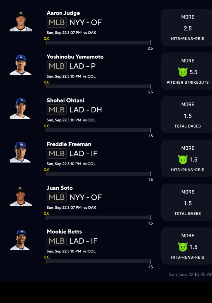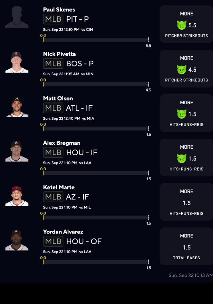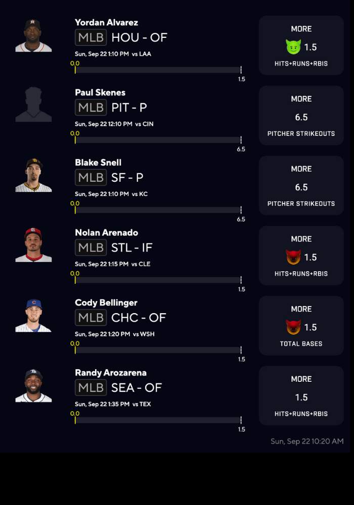 MLB Player Props for SUNDAY(9/22)