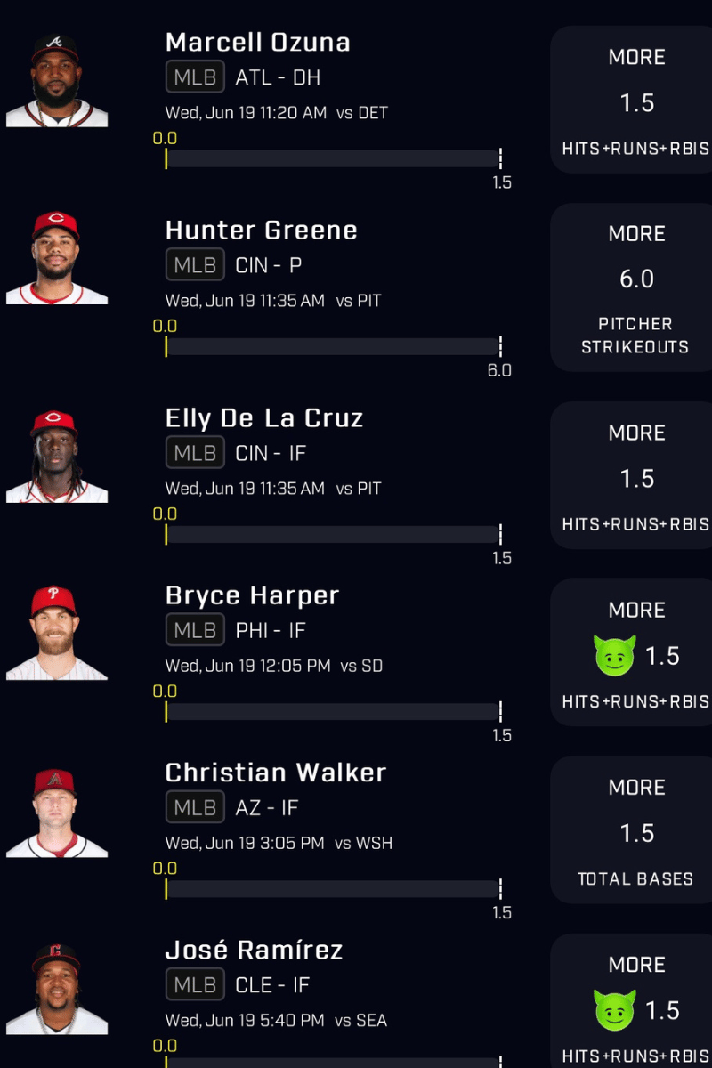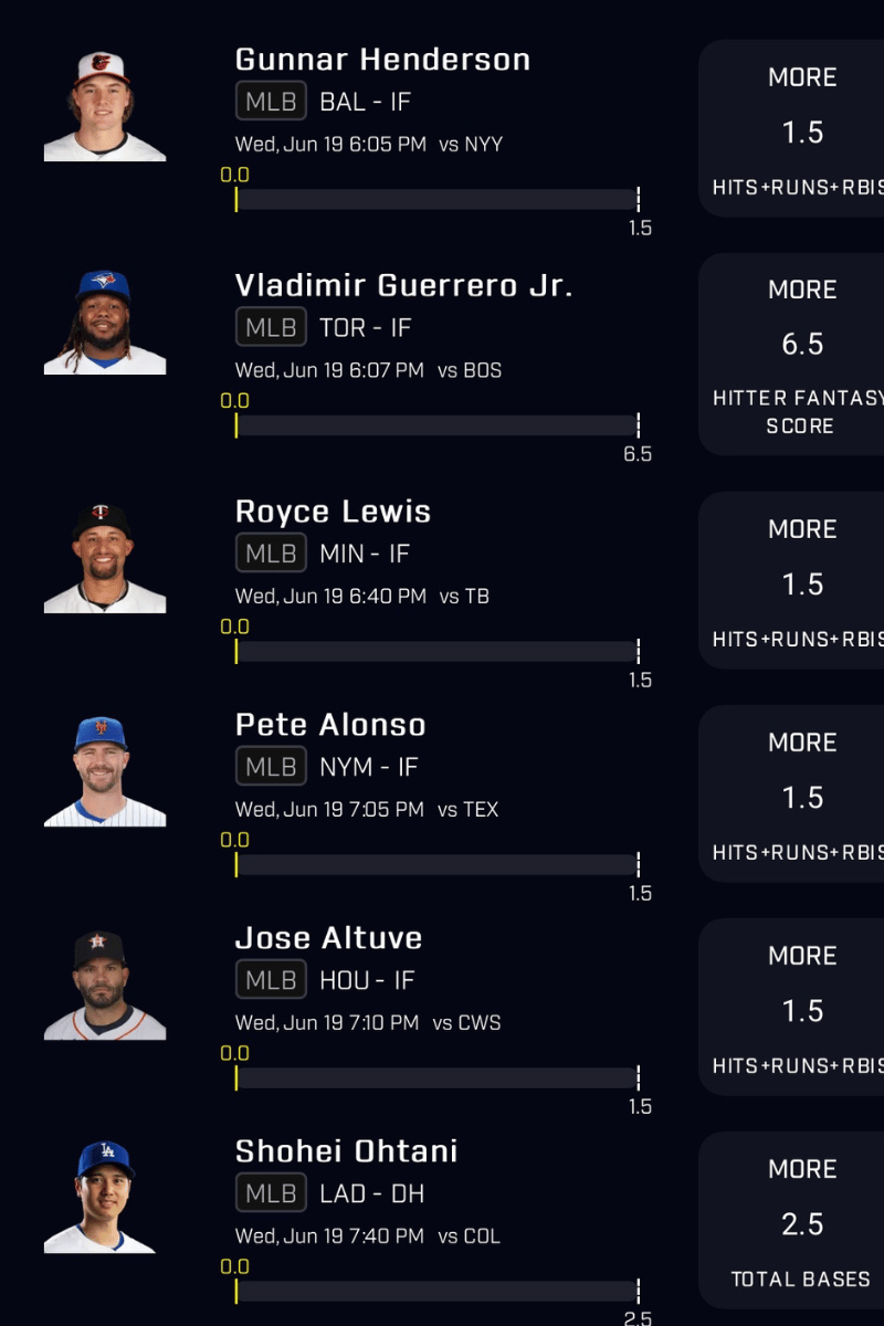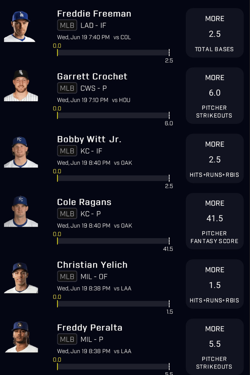 - Bobby Witt over 2.5 h+r+rbis (demon) ✅