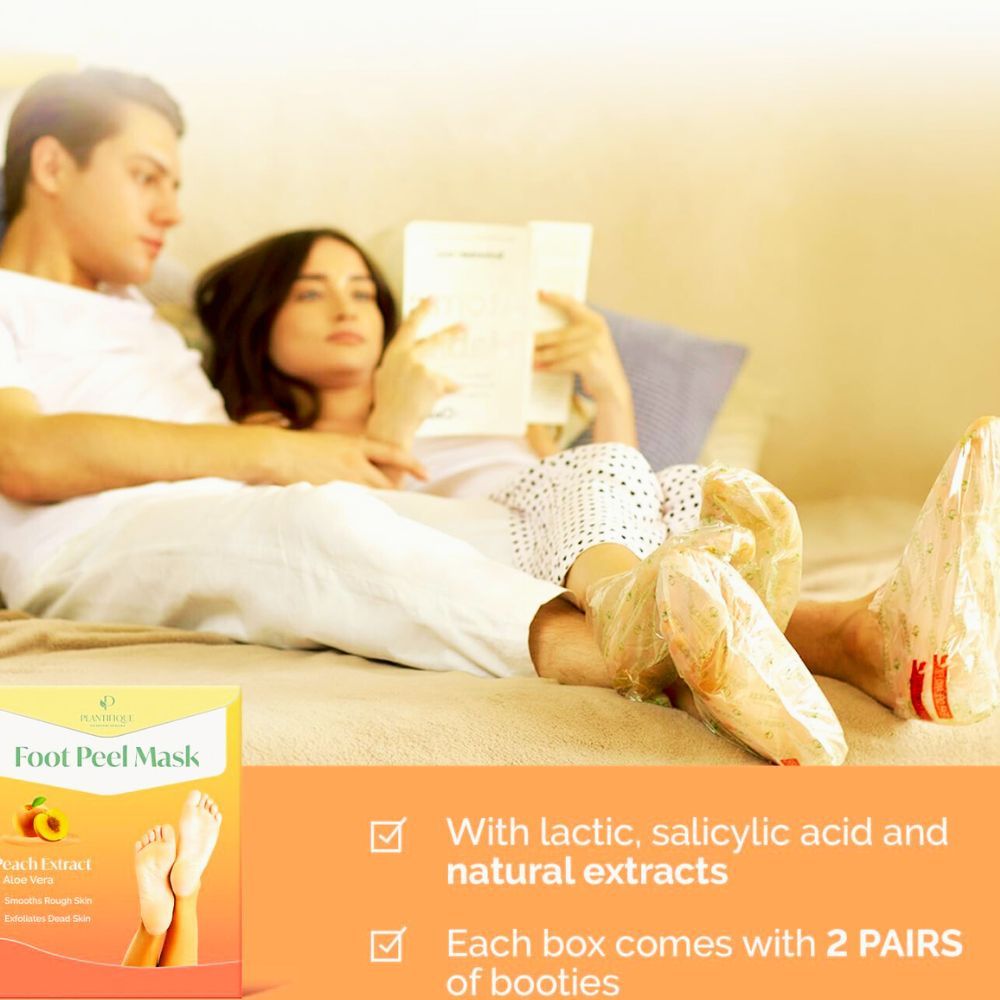 Tired of dry, cracked feet? Plantifique Foot Peel Mask can help! Our professionally tested foot peel mask is formulated with a Plantis Complex and enriched with Peach Kernel Oil to gently exfoliate and repair your feet.