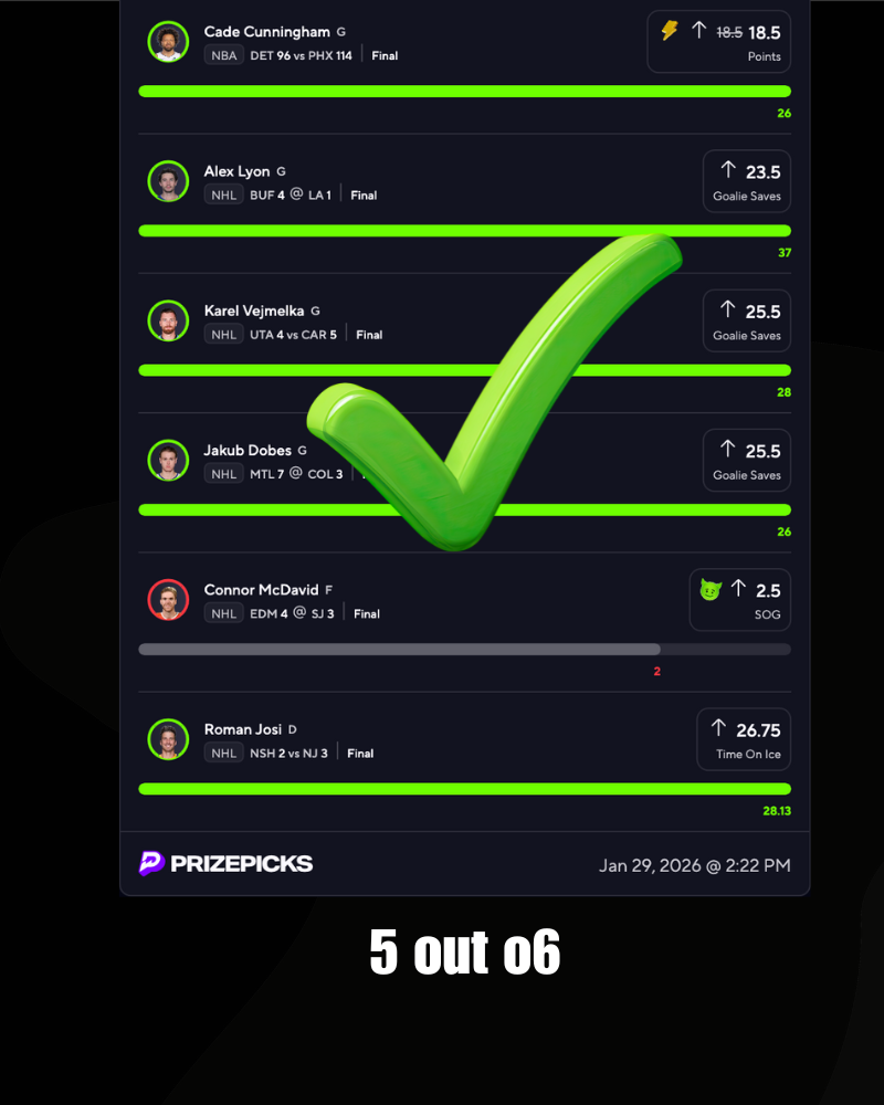5 out 6 winner below, which doubles your entry fee. Just missed on Mcdavid which blew!