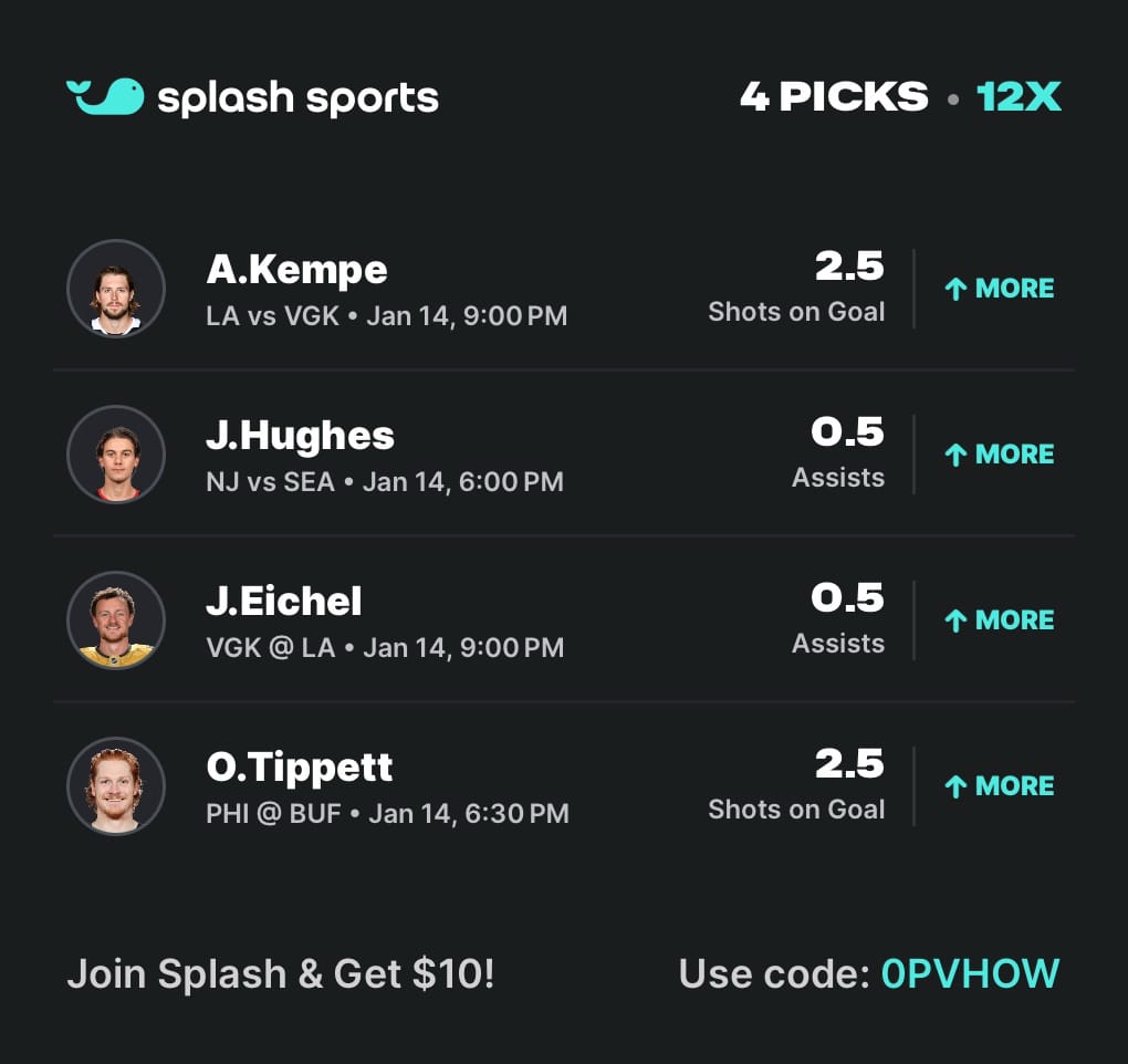 - Jack Hughes OVER .5 ASTS β