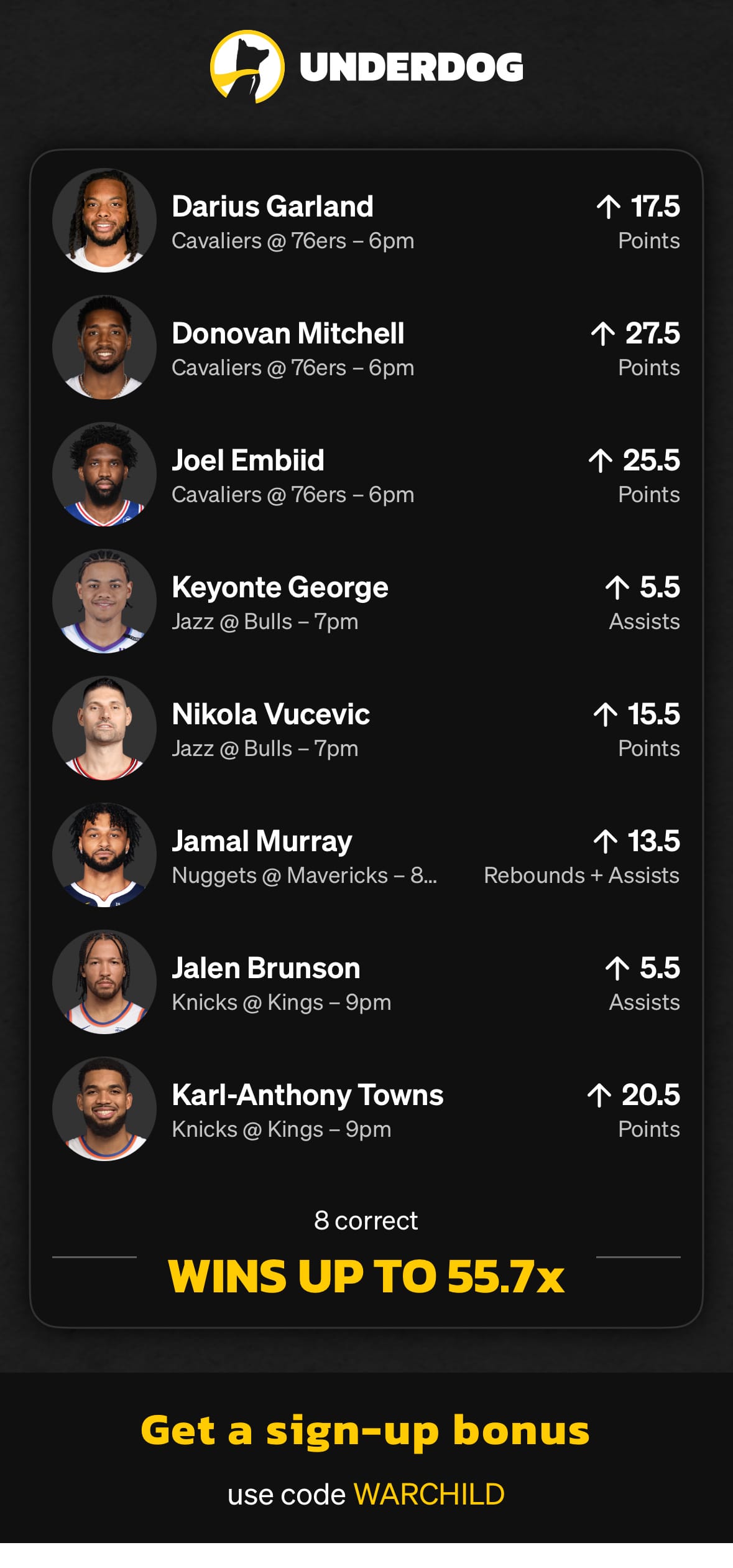 USE CODE: WARCHILD: For Deposit Bonus Underdog.