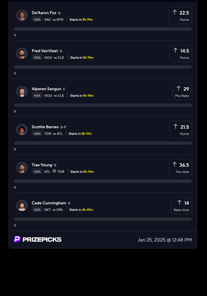 - Fred VanVleet over 14.5 pts ✅