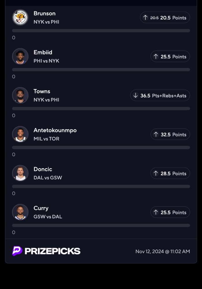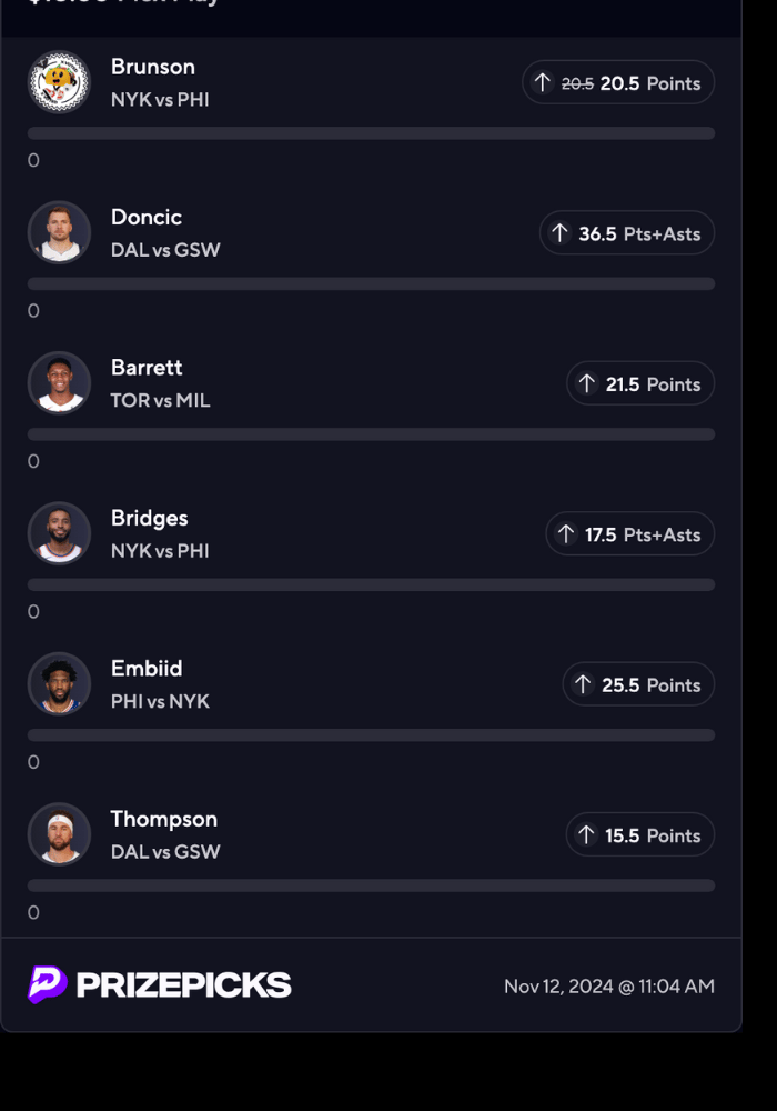 - Prizepicks, Fanduel, DraftKings, and Underdog entries below