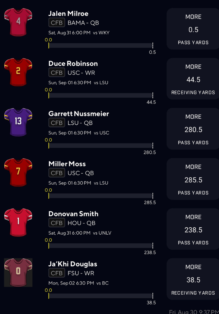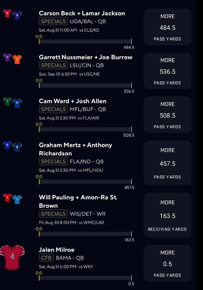 - Jalen Milroe (Bama) over .5 pass yards (prizepicks special)✅