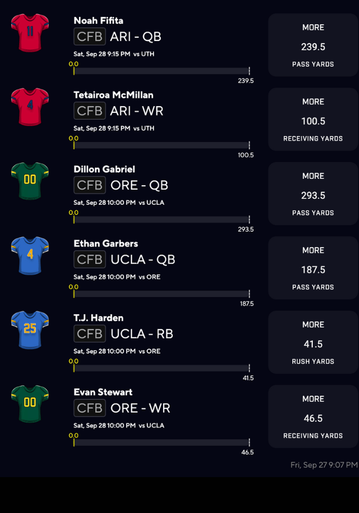 - T.J. Harden (UCLA) over 41.5 rush yards *BEST BET