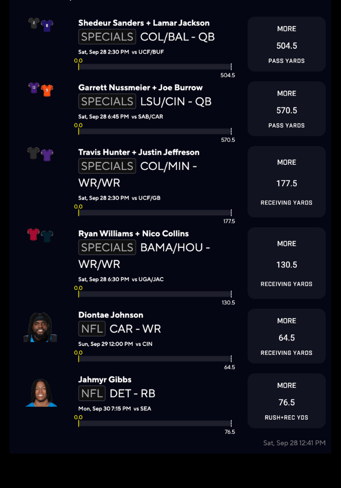 - Travis Hunter (col) over 97.5 yards