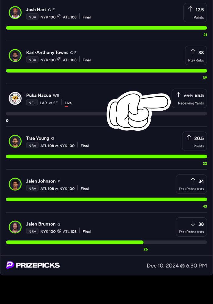 • Turtle Parlay: Jennings & Kupp each over 35 yards/over 34.5 pts/rams +11.5 = -110