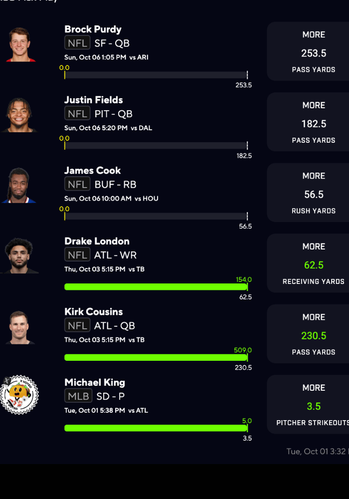 - Prizepicks, Fanduel, DraftKings, and Underdog entries below