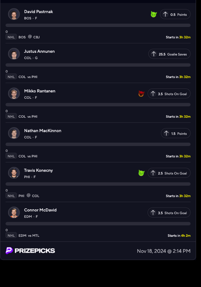 NHL PRIZEPICKS & PARLAY ENTRIES BELOW 👇👇