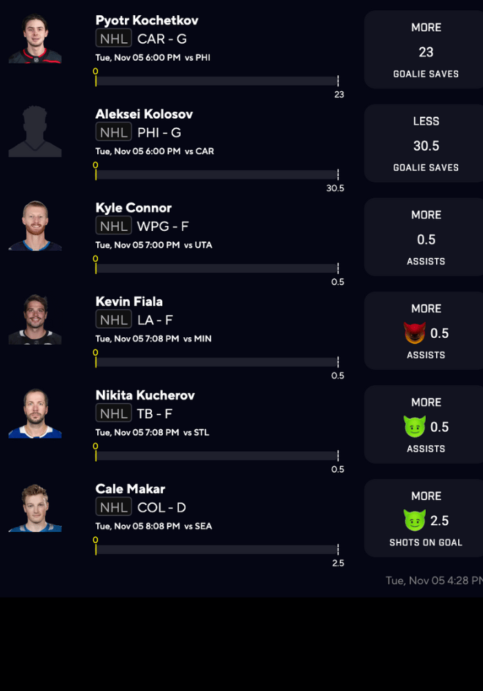 - Waiting on prizepicks to fix taco issue with Sorokin