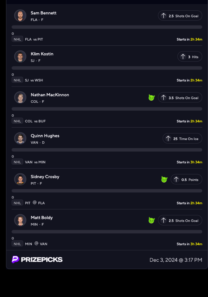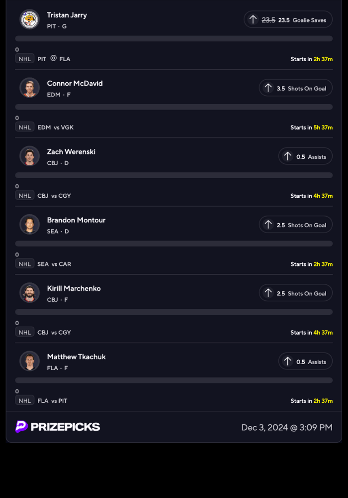 NHL PRIZEPICKS & PARLAY ENTRIES BELOW 👇👇