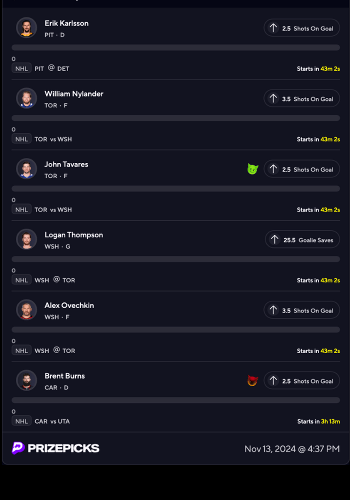 NHL PRIZEPICKS & PARLAY ENTRIES BELOW 👇👇