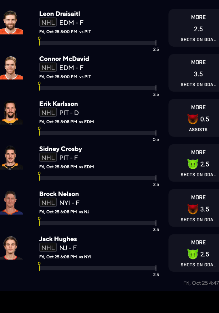NHL Player Props for FRIDAY(10/25)
