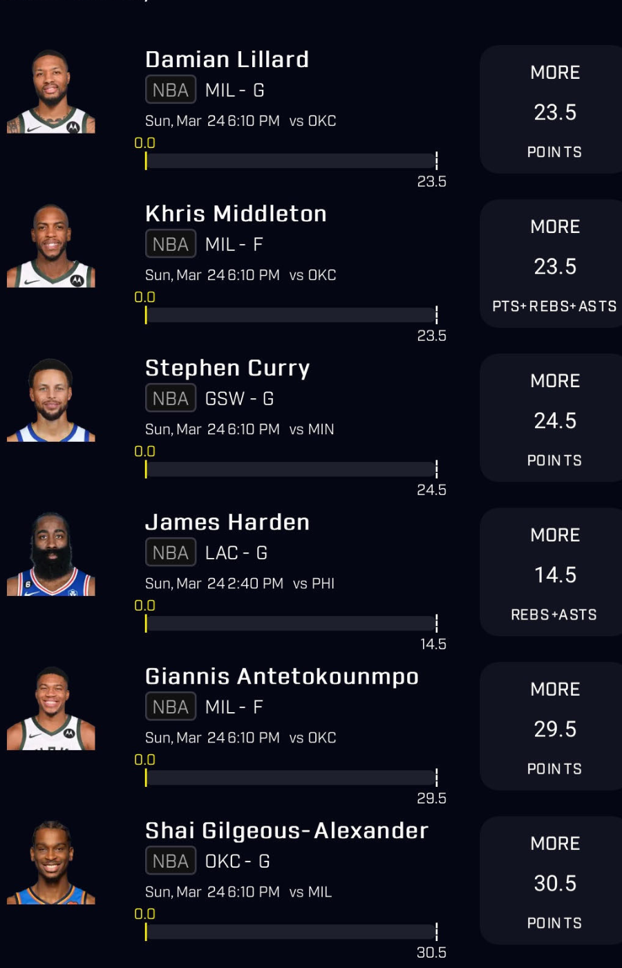 - Khris Middleton Over 23.5 pts+rebs+asts β