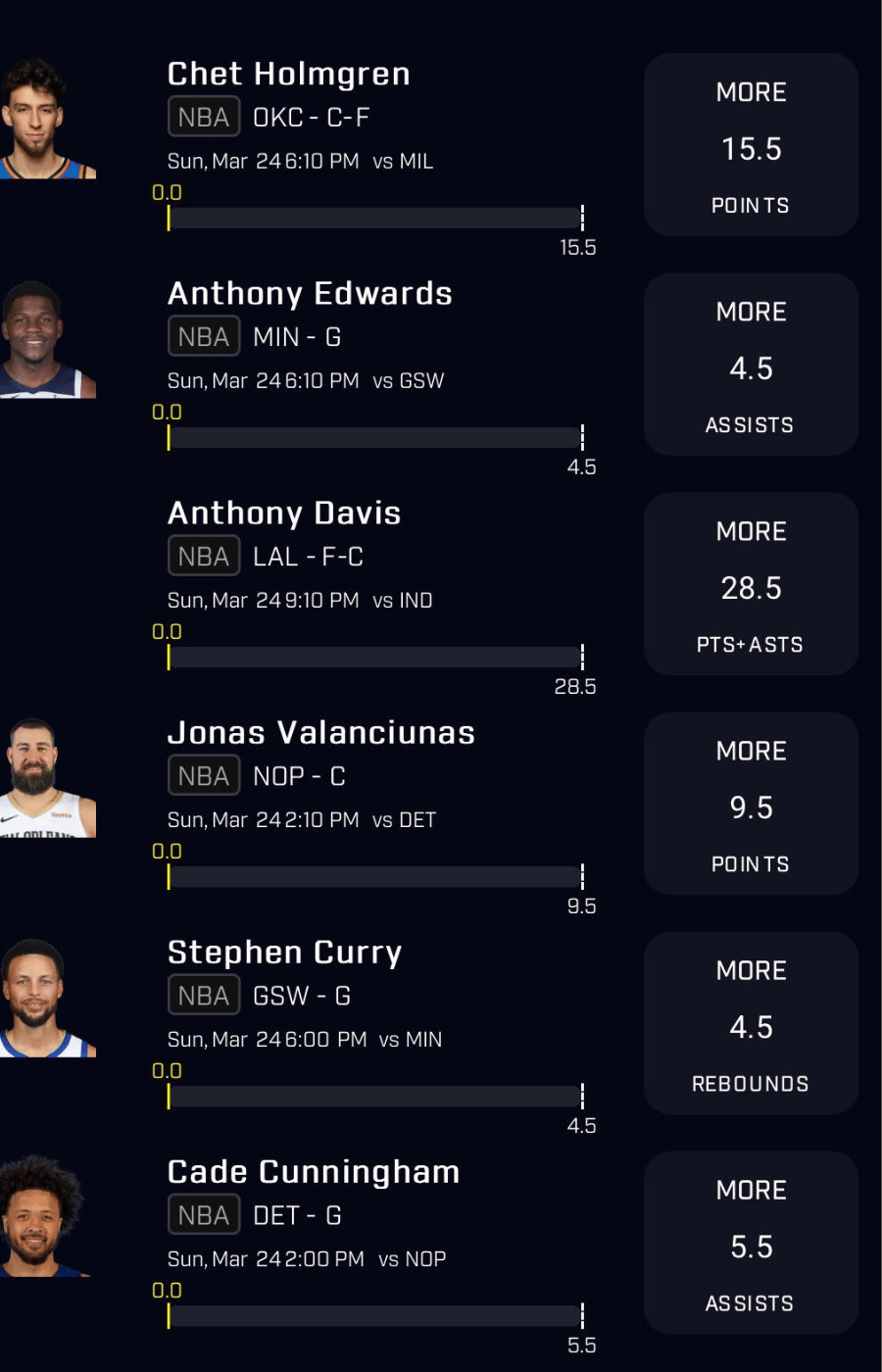 Below are my entries for prizepicks you can copy. I bet single singles or parlay props on other sites above so the lines might be a little different for them.