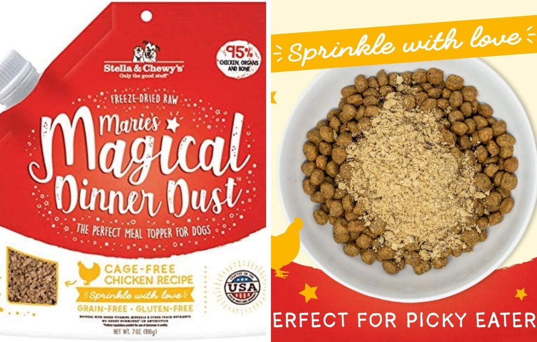 Nutritional Boost with Every Shake Adding Stella & Chewy's Marie's Magical Dinner Dust to your dog's meal isn't just about the excitement it brings to their bowl; it's a nutritional powerhouse in a pinch. Each shake of this magic dinner dust is packed with essential vitamins and minerals.