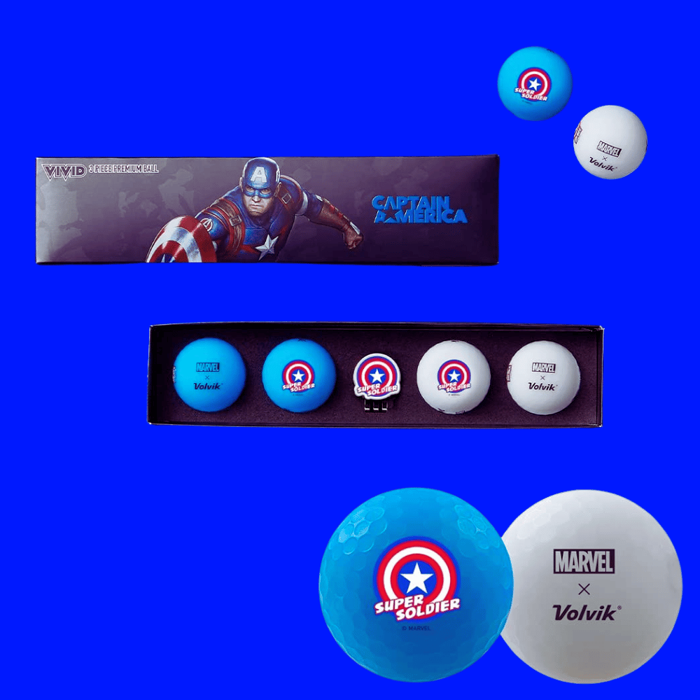 Introducing the Volvik x Marvel Gift Set - Captain America 2.0! This limited-edition ball is ready to transform your game and elevate your style. Feature volvik's new oversized energy core design maximizes distance, while the patented matte finish and vibrant colors minimize glare for improved concentration and ball striking. But that's not all! Guaranteed to turn heads on the green, these vivid colors were designed for maximum visibility in flight and on the ground.