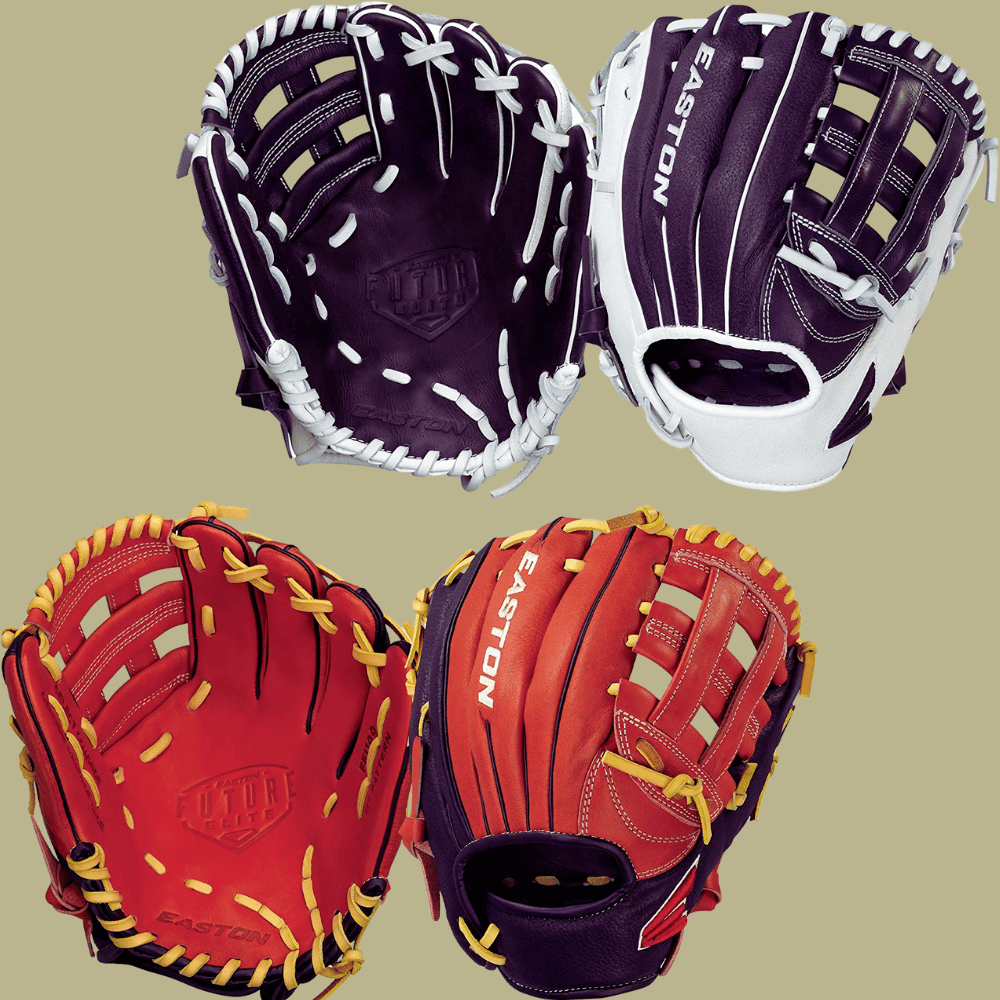 Get ready to show off your sharp skills with the Easton Future Elite Youth Players Baseball Glove Series. You'll look like a pro in twelve dazzling colors and forges that match your uniform and your favorite player's glove. Outshine the competition with Game-ready Select Cowhide palm and web leather, durable rawhide lace for your index finger, and a super soft palm lining to reduce irritation on the field.