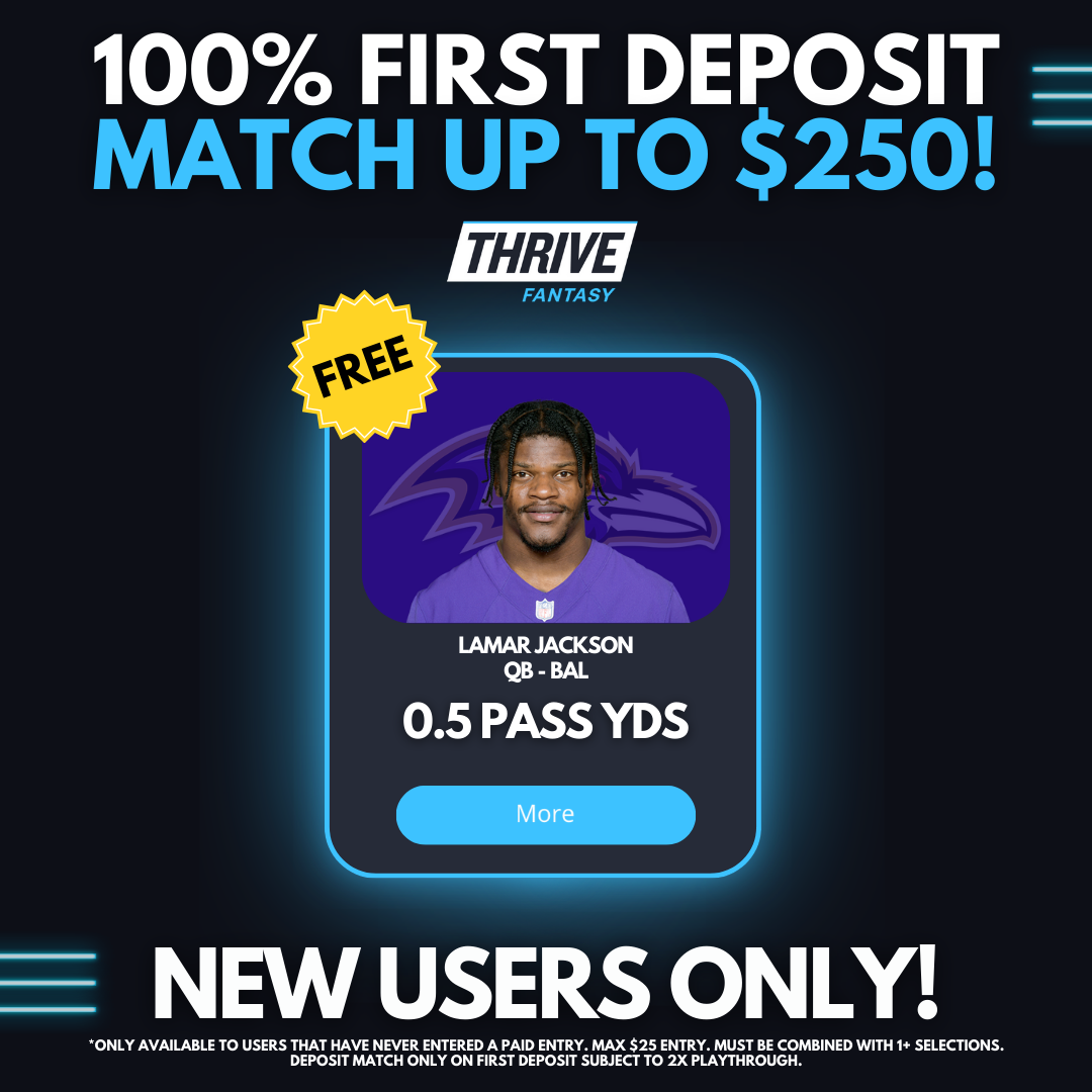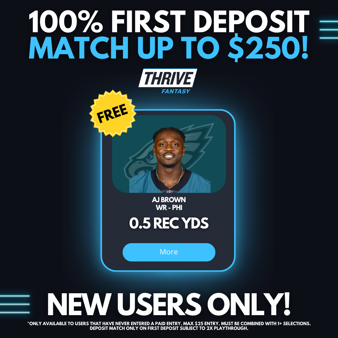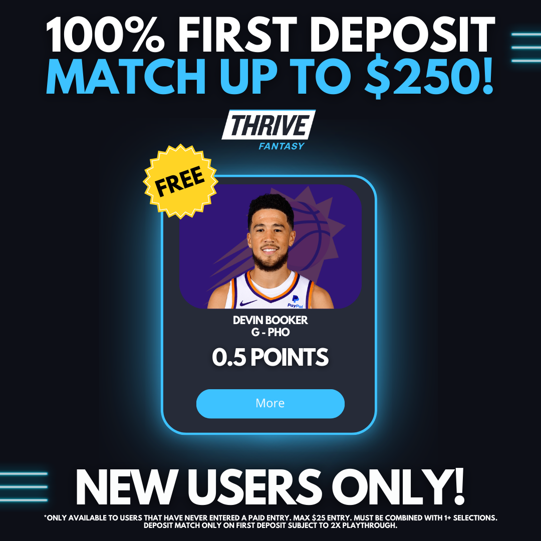 Thrive Fantasy: Click HERE: For 100% Deposit Match up to $250!