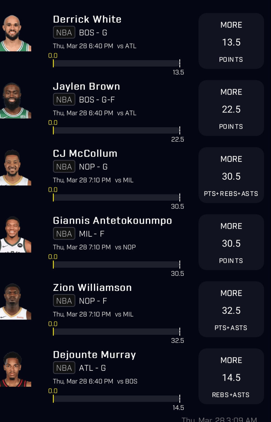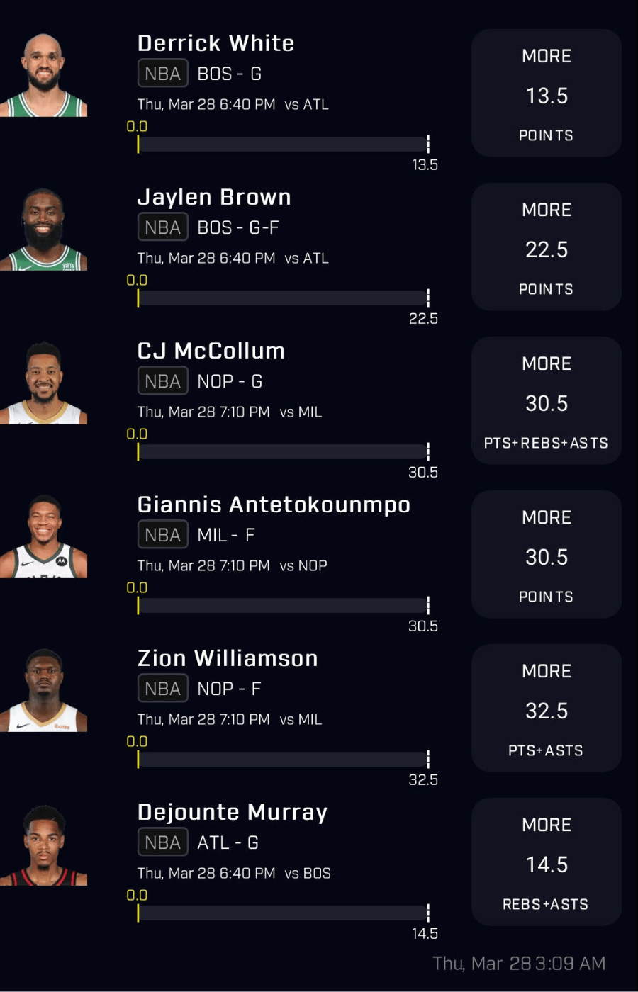 NBA Player Props for Thursday, March 28th